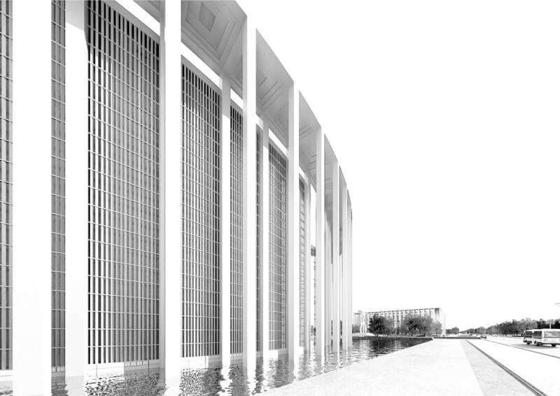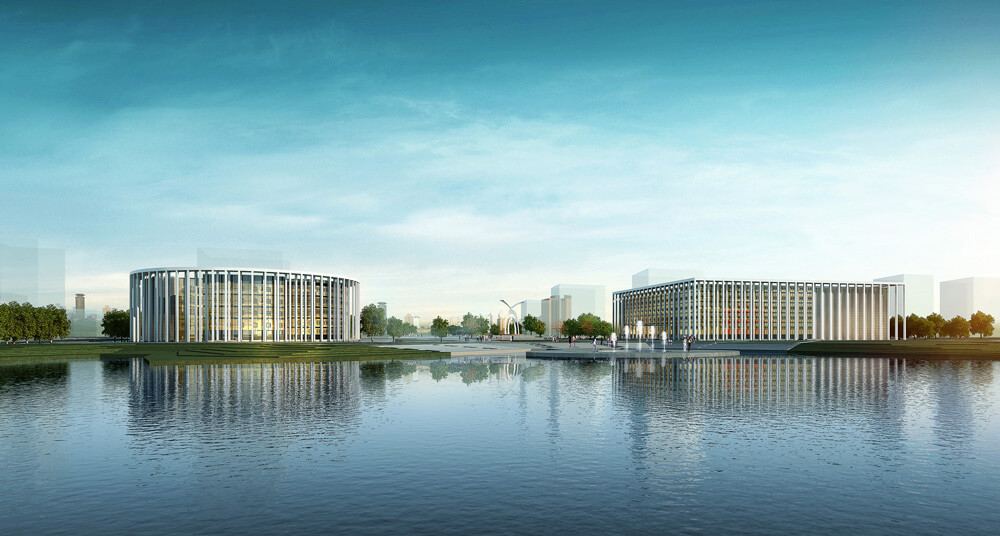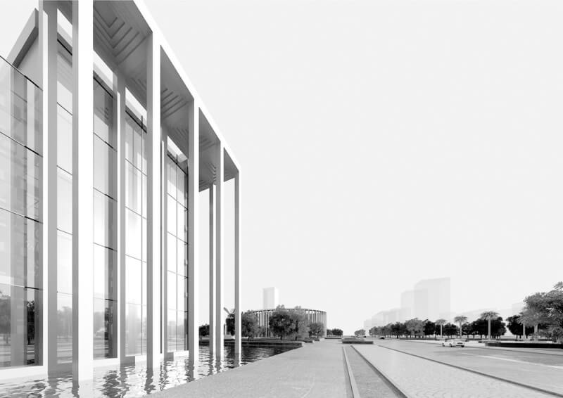 由此,“内敛”、“优雅”是我们对文化中心的建筑设计方案的基本定位,我们摈弃了对建筑形式的过分追求,回归建筑本质,采用最基本的几何形体――方与圆,用以组织东西两个地块的基本建筑形体。