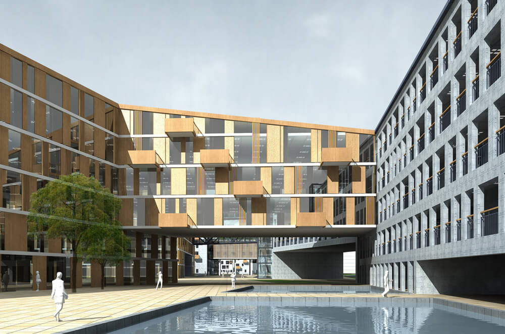林荫道上散落的阳光,走廊上的邂逅,宿舍前草坪上的朗读声…… 我们决心继承传统院校的亲人尺度及建筑关系,坚持校园规划以人为本的原则,创造多样性、趣味性的校园空间,追求空间的多层次性、连续性和人性化设计。这正是现代院校规划和设计的诉求,我们将把这一理念贯穿整个设计之中。