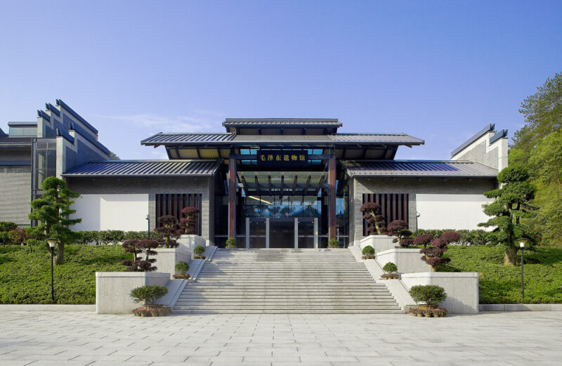 毛泽东遗物馆于2008年12月25日竣工并正式对外开放,整个建筑依山就势,层层叠落,呈分散式院落组合布局,充满了诗情画意的江南园林特色。建筑结构采用了钢屋架屋面,白墙灰檐,与韶山乡村自然和人文环境相得益彰。